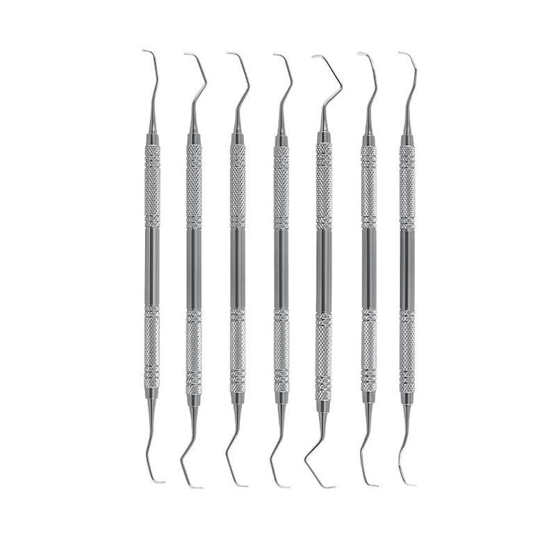 - Nástroj k odstranění subgingiválního zubního kamene.