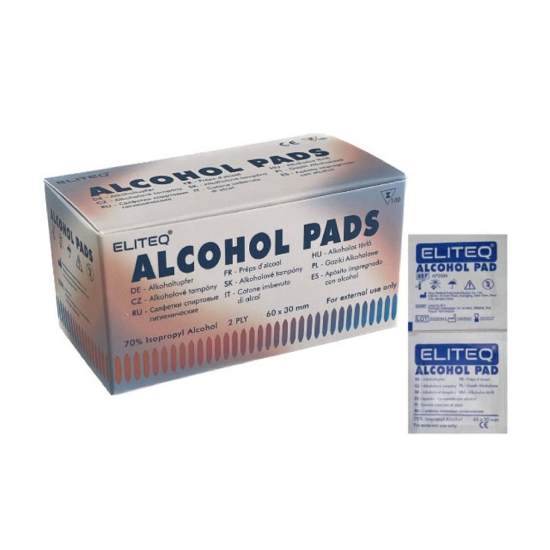 - 100 ks alkoholových polštářků, každý jednotlivě balen.